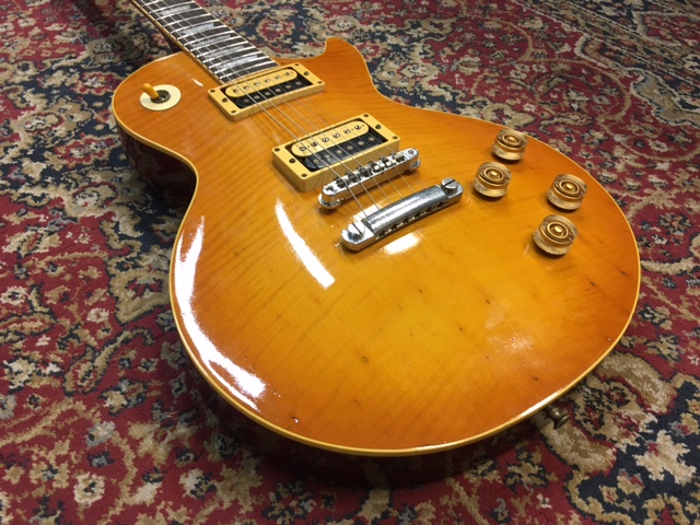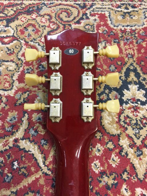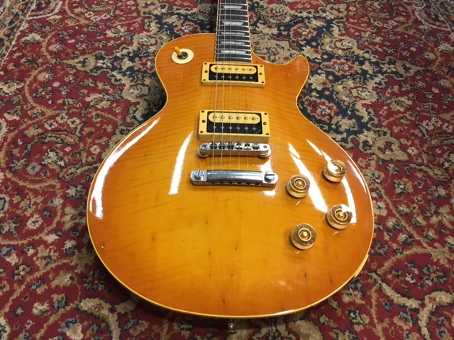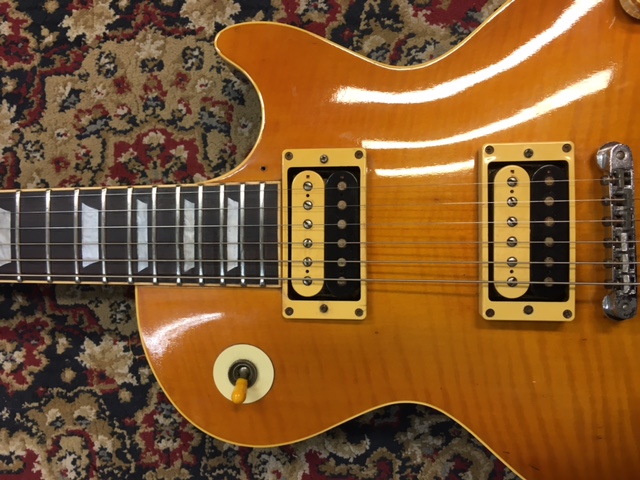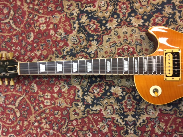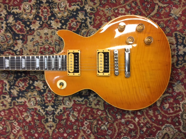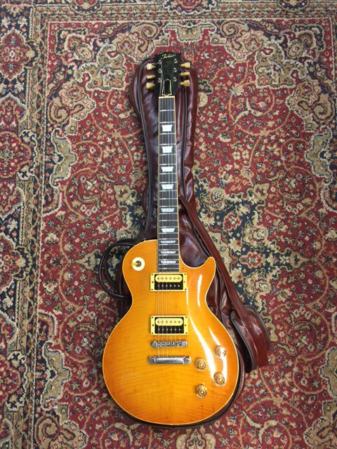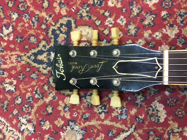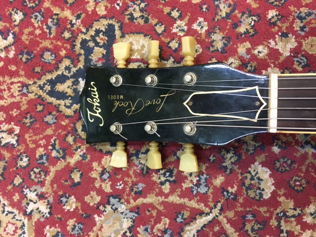 Prachtige Tokai uit Japan. Flame maple top, Mahonie body uit 1 stuk. Erg licht voor een les Paul met z’n 3.9 kilo. Heeft een paar butsen, maar dat geeft deze echt karakter. Frets zijn netjes. Grotendeels in originele staat. Pickguard mist en de knoppen zijn niet origineel. Tuners zijn van Tokai maar zijn denk ik van een eerdere datum. Electronica is origineel met de Tokai ’57 Paf elementen. Komt met originele Tokai zak. €1250,-