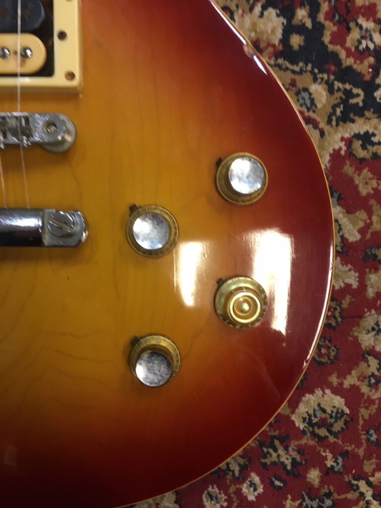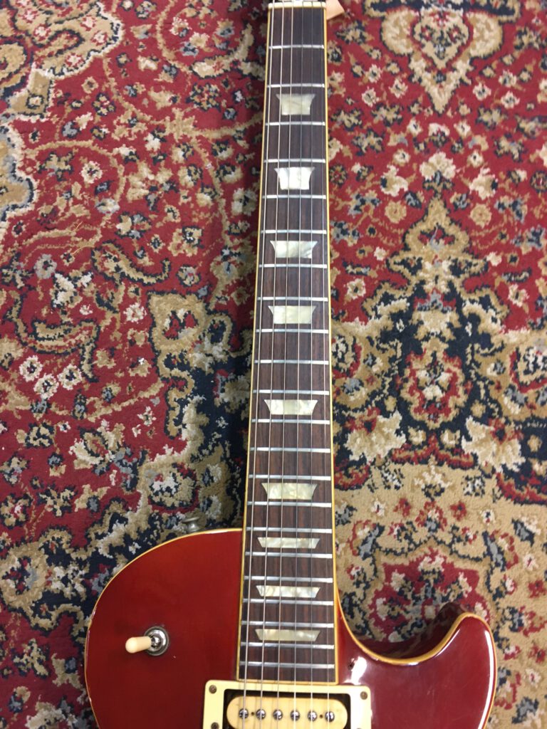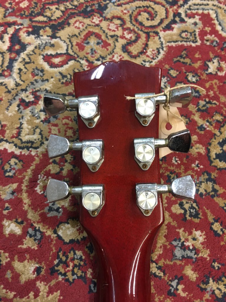 Mooie Les Paul van Burny. Dit is een vroege uit 1976, nog gemaakt in de Terada fabriek in Japan. Normale gebruiksporen voor 50! jaar oud. Mahonie body uit 1! stuk. Frets zijn laag, maar speelt nog super met lage actie. De potmeters en switch waren totaal versleten en zijn vervangen. Zijn nog wel bij de koop inbegrepen. Mist een knop en slagplaat. Verder is de gitaar nog origineel. Prijs €695,-